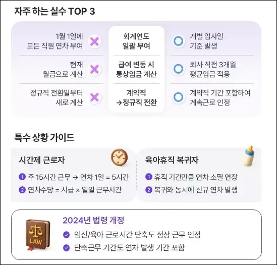 - 연차계산기는 한 번의 입력으로 끝나는 것이 아니라, 매월 또는 연말마다 재검증하는 것이 좋습니다.