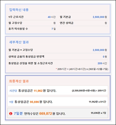 고용노동부 연차계산기