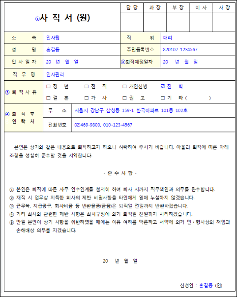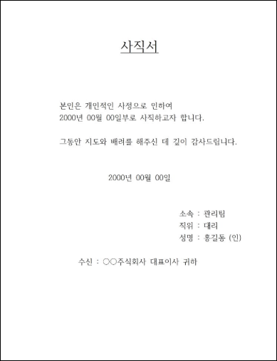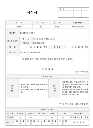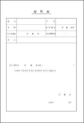 사직서 쓰는법