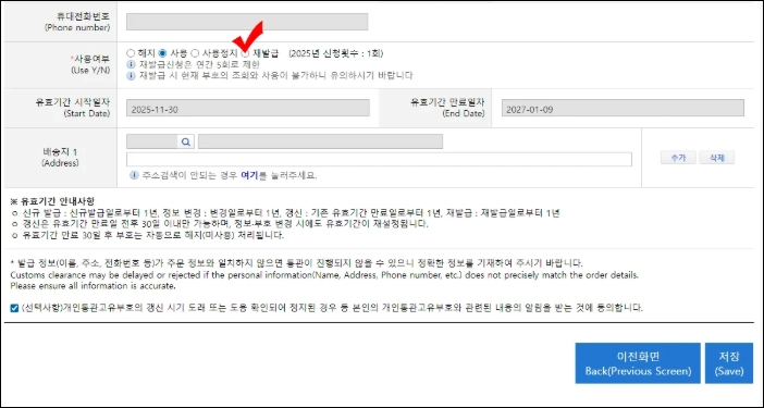 - 폐기된 개인통관번호는 다시 사용할 수 없음