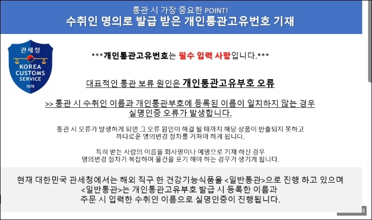 - 여러 쇼핑몰에 동일한 개인통관번호를 3년 이상 사용 중이다