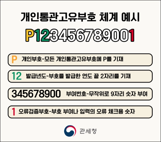 개인통관 고유번호(Personal Customs Clearance Code, PCCC)는 관세청에서 개인의 수입 통관을 위해 부여하는 13자리 식별번호입니다. 주민등록번호 대신 통관 정보를 관리하기 위해 만들어진 제도이며, 해외직구·직접구매·배송대행 서비스 이용 시 반드시 필요합니다.