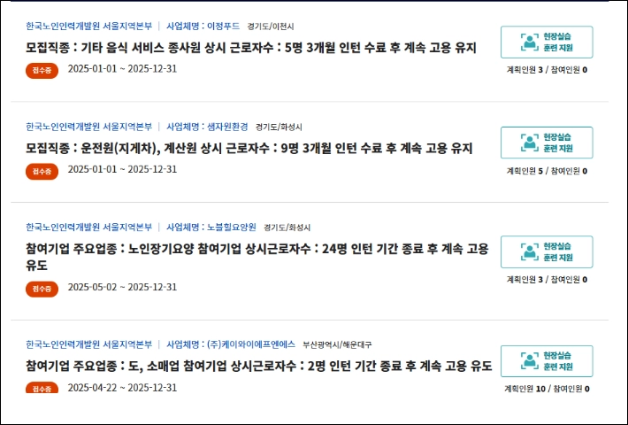 - 추가 지원: 시니어인턴십의 경우 기업 인건비 보조로 정규직 전환 기회.