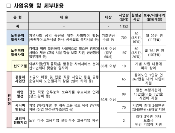 - 사업명: 노인일자리 및 사회활동 지원사업
