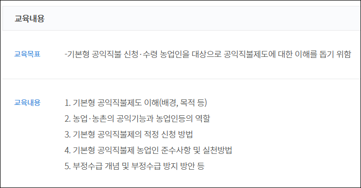 공익직불금 의무교육 개요