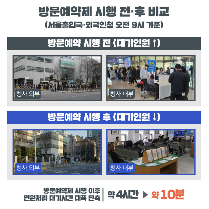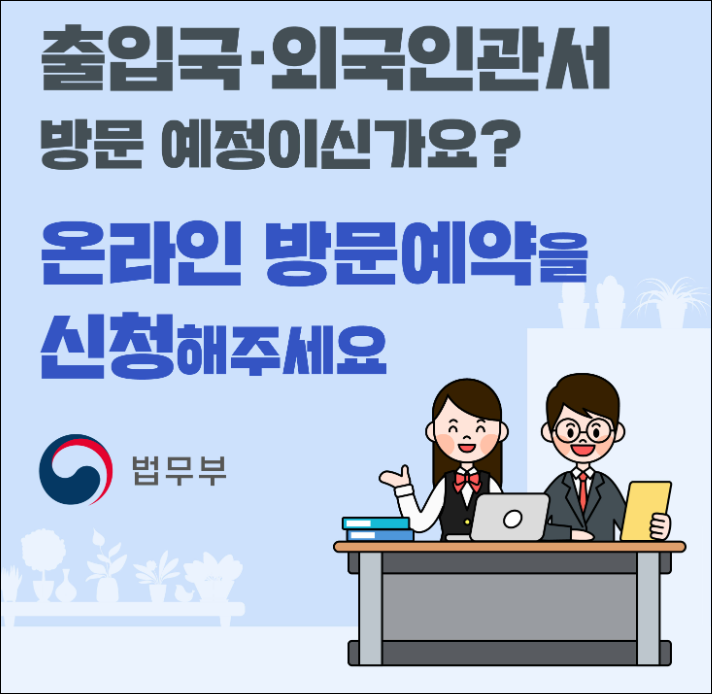 출입국·외국인관서는 사전 예약제를 원칙으로 운영하고 있으며, 예약이 없는 경우 대기 접수는 제한됩니다.