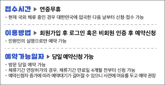 - 예약자 본인 직접 방문 원칙(대리 접수 제한)