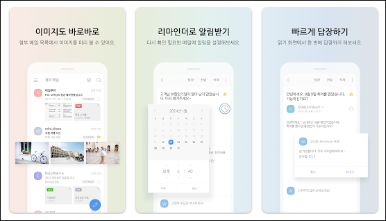 - 알림 설정을 통해 새로운 메일 도착 시 즉시 알림도 받을 수 있음