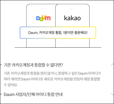 한메일 계정 및 카카오 통합 안내