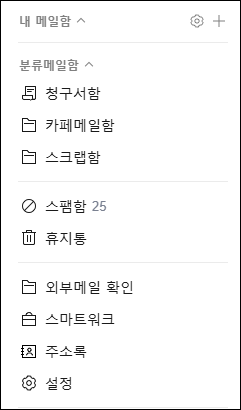 | 메일함 정리 기능 | 폴더 및 태그 지정, 정기 삭제 설정 가능 → 용량 관리에 유리 |