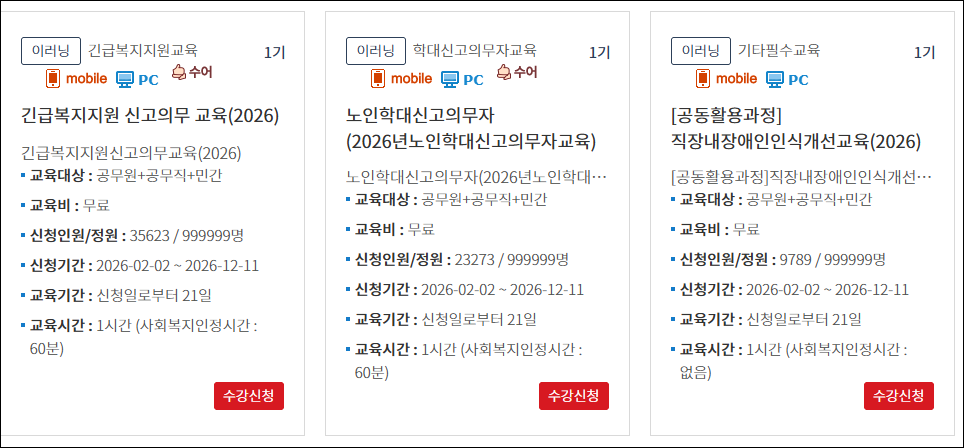 2026 긴급복지 신고의무자 교육 온라인 수강 바로가기