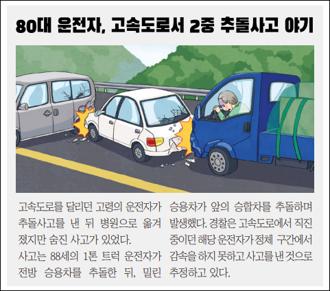 | 사고 유형 분석 | 고령운전자 특유의 사고 유형(우회전·좌회전 충돌, 보행자 사고 등)과 실제 사례 소개. |