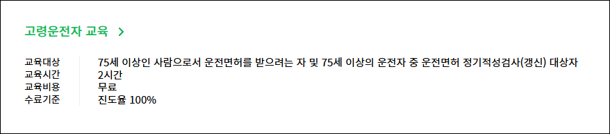 | 75세 이상 운전자 | 의무 교육 (면허 갱신 필수) |