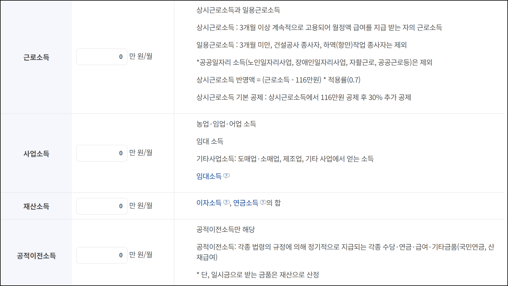 | 단독가구 (혼자 거주) | 월 247만원 이하 |